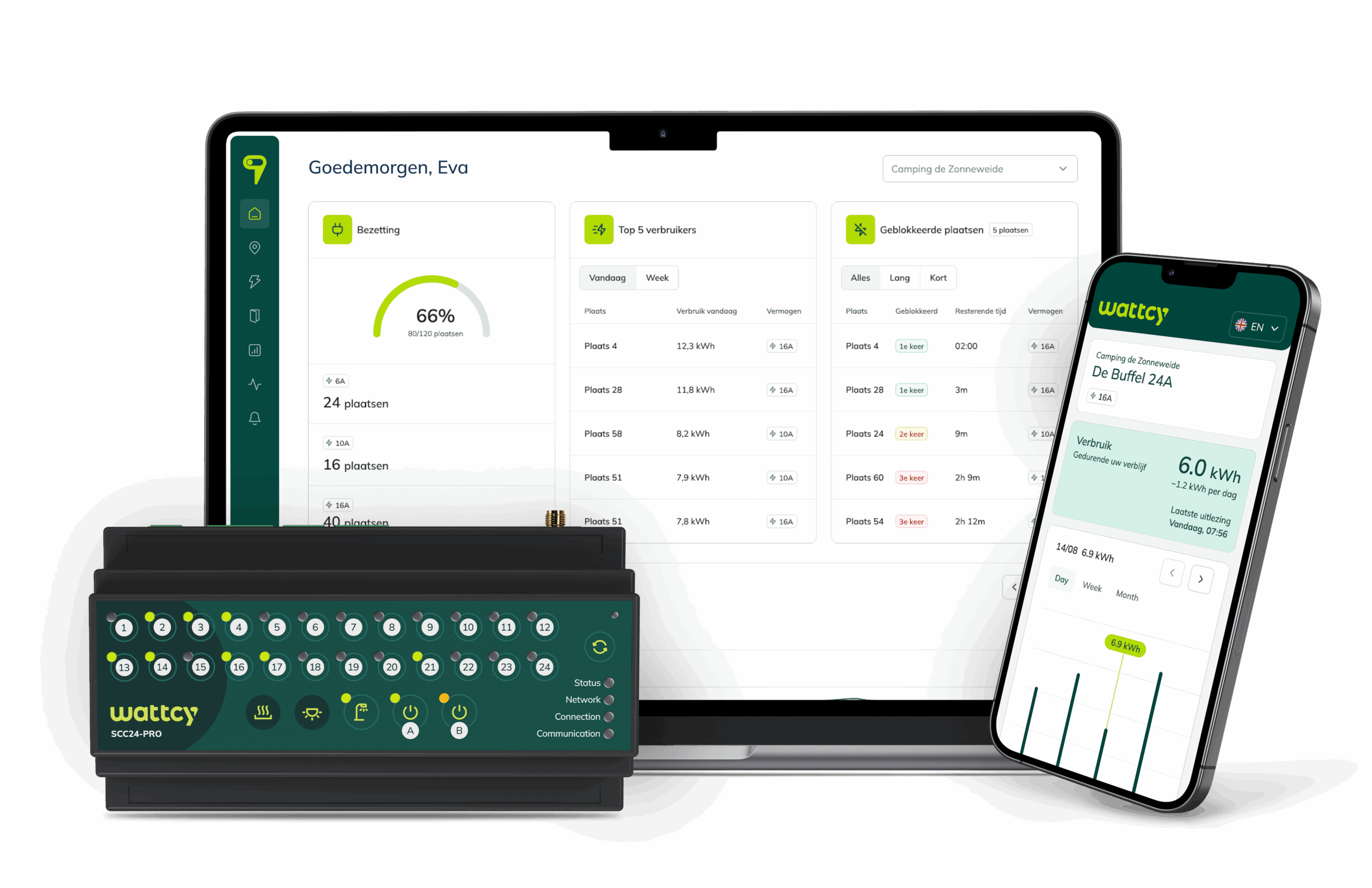 Wattcy maakt geen gebruik van het wifi-netwerk van uw camping. Ook niet van uw bedrade netwerk. Alle data wordt rechtstreeks ontsloten naar de software.